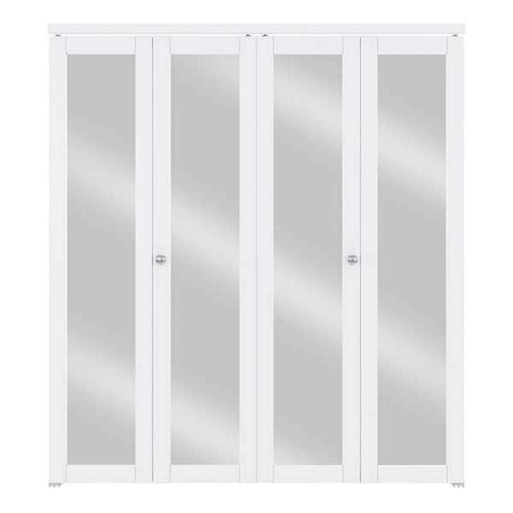 72 in. x 80 in. 1-Lite Mirrored Glass and Solid Core White Finished MDF Interior Closet Bi-fold Door with Hardware